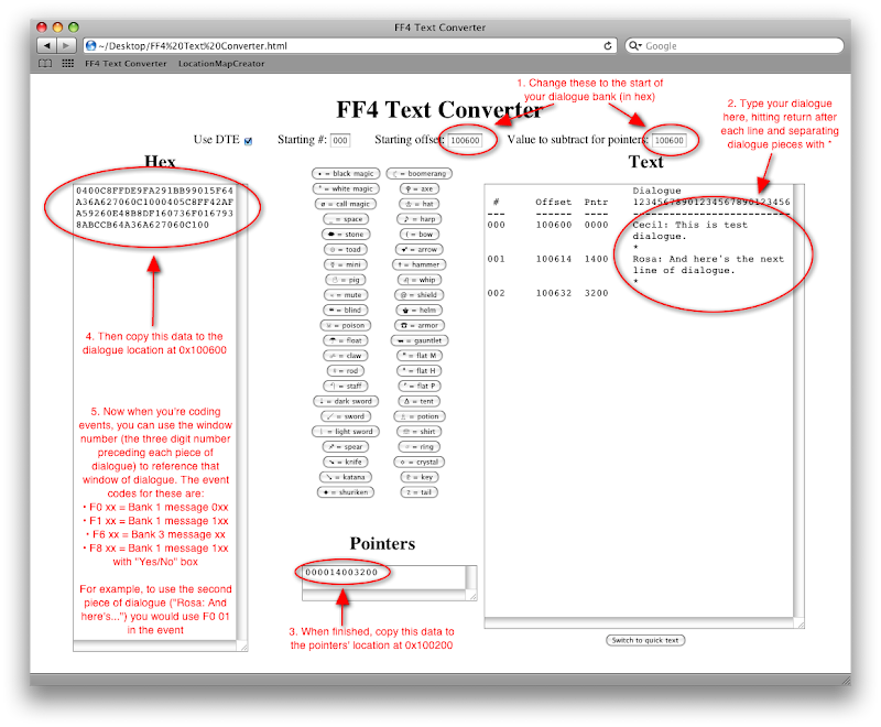 However, the problem is that FFIV has three pointer tables for the script, and the order the text is stored in is wacky. What I want to do (and what I've spent many hours doing) is to have the script be in the game in roughly the order you encounter it in (that way, down the road, it'll be easier to edit, plus, it'll be neater).